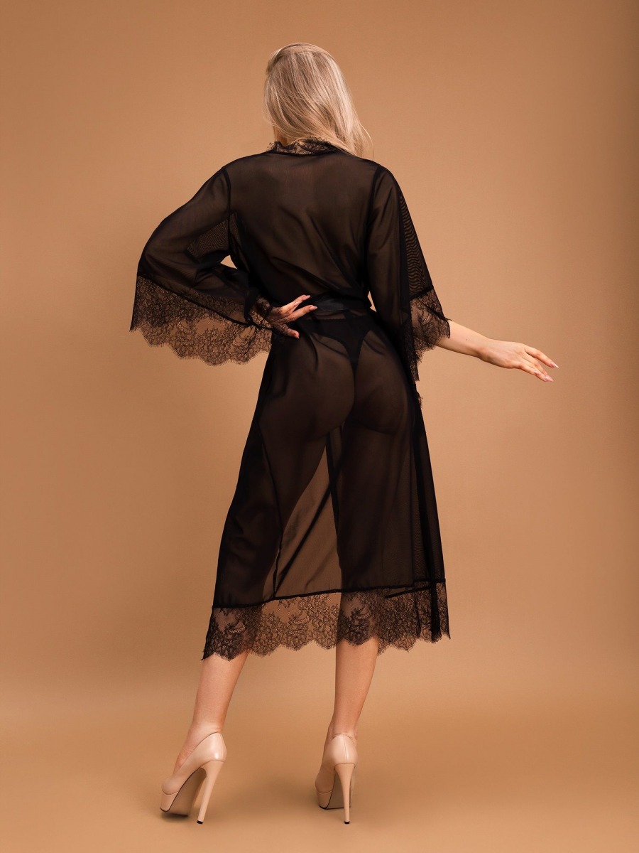 Этот длинный пеньюар создан для тех, кто желает выглядеть элегантно и изысканно. Этот наряд сделан из прозрачной сетки, что позволяет обнажить красивое женское тело, но в то же время не показывая его полностью. При этом, потрясающее тонкое французское кружево с ресничками, отделка края и низа, придают пеньюару особый шарм и изысканность. К тому же, благодаря расклешенным рукавам, этот пеньюар создает эффект легкости и плавности, а также подчеркивает тонкость и элегантность женских рук. В нем вы будете чувствовать себя уверенно и привлекательно, не снимая наряд даже во время близости. Это идеальный выбор для шикарной женщины, которая ценит утонченность и чувственность, и хочет показать это в своем наряде. В комплекте: пеньюар. Белье не входит в комплект!