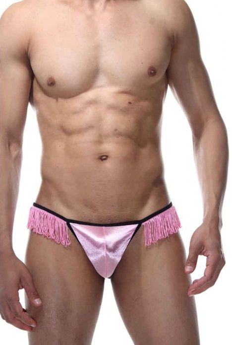 Трусы-стринги из гладкой ткани, декорированные бахромой.