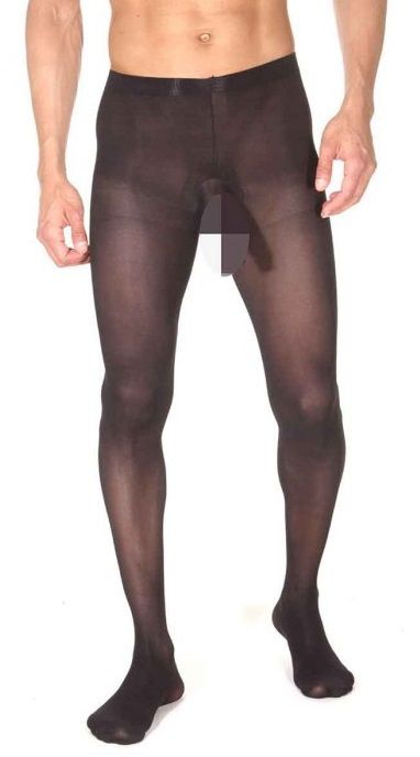 Мужские полупрозрачные плотные колготы. На колготах есть спереди вырезы на интимной зоне. Ткань, из которой изготовлены колготы, отлично тянется и не будет доставлять никакого дискомфорта.