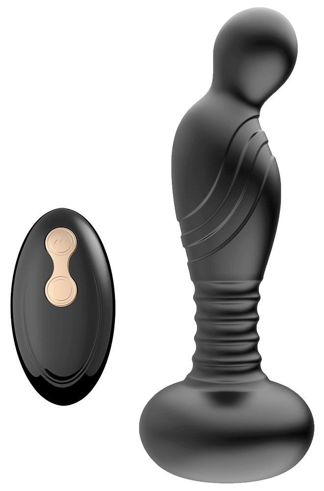 Современный массажер простаты, оснащен 10 режимами вибрации, а движение вверх-вниз (10 поступательных режимов) добавляет еще больше удовольствий. Массажером можно управлять с помощью пульта дистанционного управления. Водонепроницаем. Зарядка осуществляется с помощью USB. Рабочая длина - 9 см.