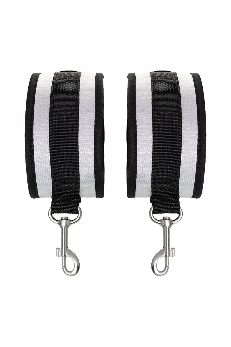 Наручники — классический предмет для игры в подчинение, обязательный для начинающих и опытных поклонников БДСМ. Блестящий во всех смыслах аксессуар для ограничения свободы: сатиновый материал поблескивает, когда на него падает свет. Необычное сочетание серебристого и черного, совсем нехарактерное для классического исполнения аксессуаров в стиле БДСМ, придает изюминку и новизну. Подчиненный с таким аксессуаром выглядит неотразимым. Застежка велкро позволяет зафиксировать руки любого размера. Между собой наручники скрепляются карабинами, практически не оставляя свободы действий. Никакого послабления, только полное подчинение своему Доминанту, где бы ни были зафиксированы руки: впереди или за спиной. Используйте дополнительно цепочку для расширенных возможностей фиксации положения рук. Начните игру в подчинение с этим аксессуаром, и вы поймете, как развивать свою чувственность с помощью ограничения свободы одного из партнеров. Ширина - 5,5 см. Длина сцепки - 8 см.