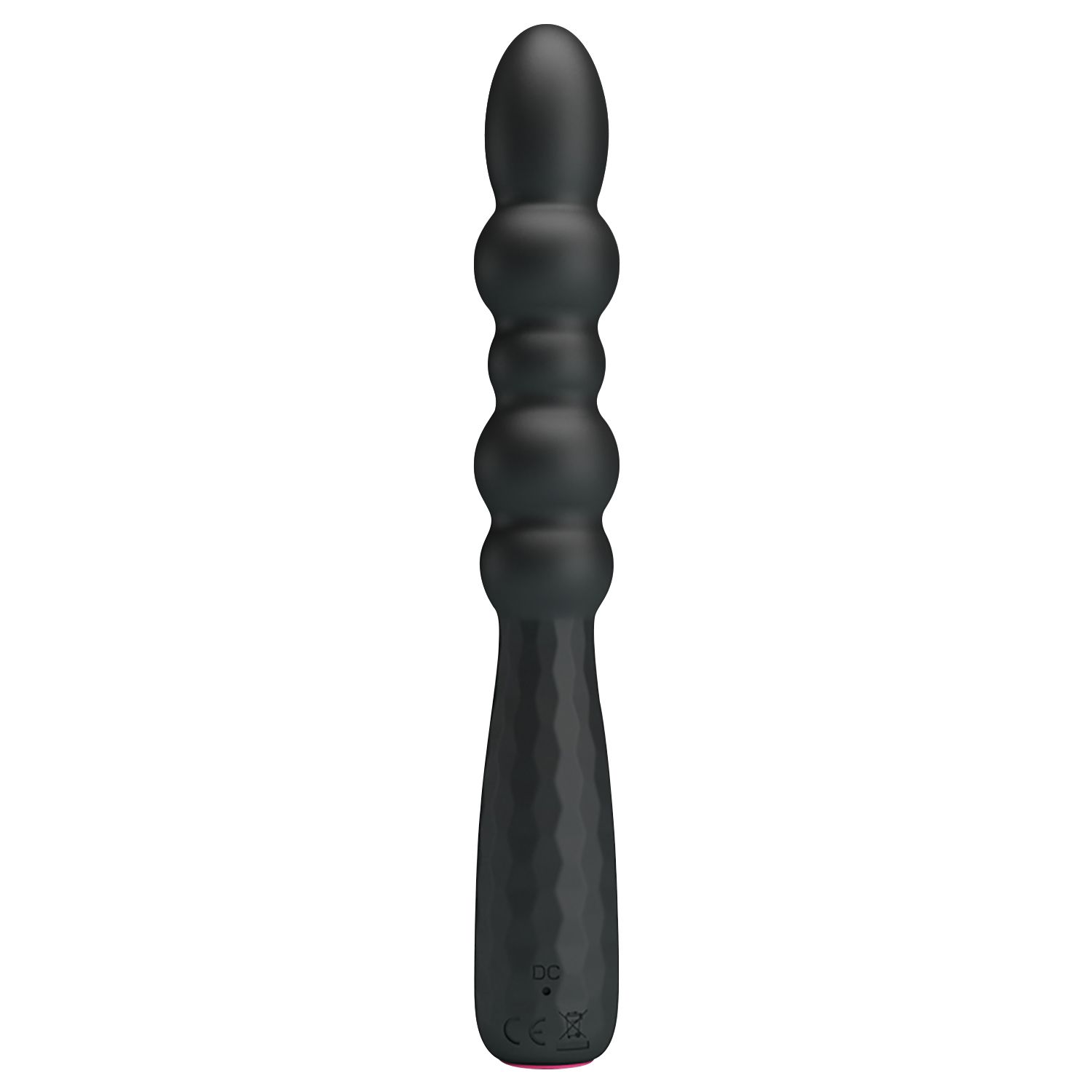 Черный гибкий анальный вибратор. Выполнен из силикона и имеет 12 режимов вибрации.
