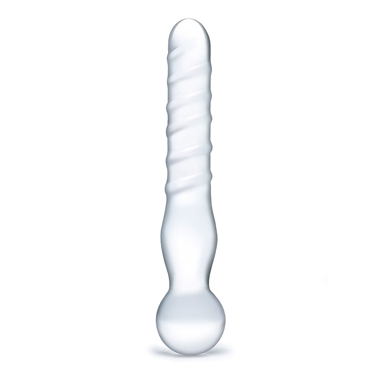 Прямой жезл с основанием-шаром, тело которого покрыто прозрачной толстой спиралью. Длина фаллоса вместе с шаром: 20 см. Диаметр: 3 см.